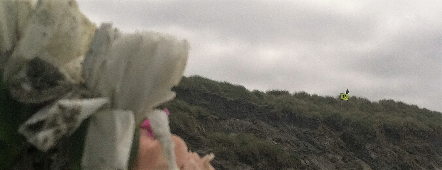 I saw a long-stemmed yellow flower at the wrack line. I picked it up and kept walking south toward Saddle Mountain. I saw another, red, and picked it up. Then two others—purple and yellow—my collection grew—and I had no idea underlying the inspiration, although I did have a candidate for the bouquet, assuming she’d accept dead wrack flowers reeking of decomposition of the sea.